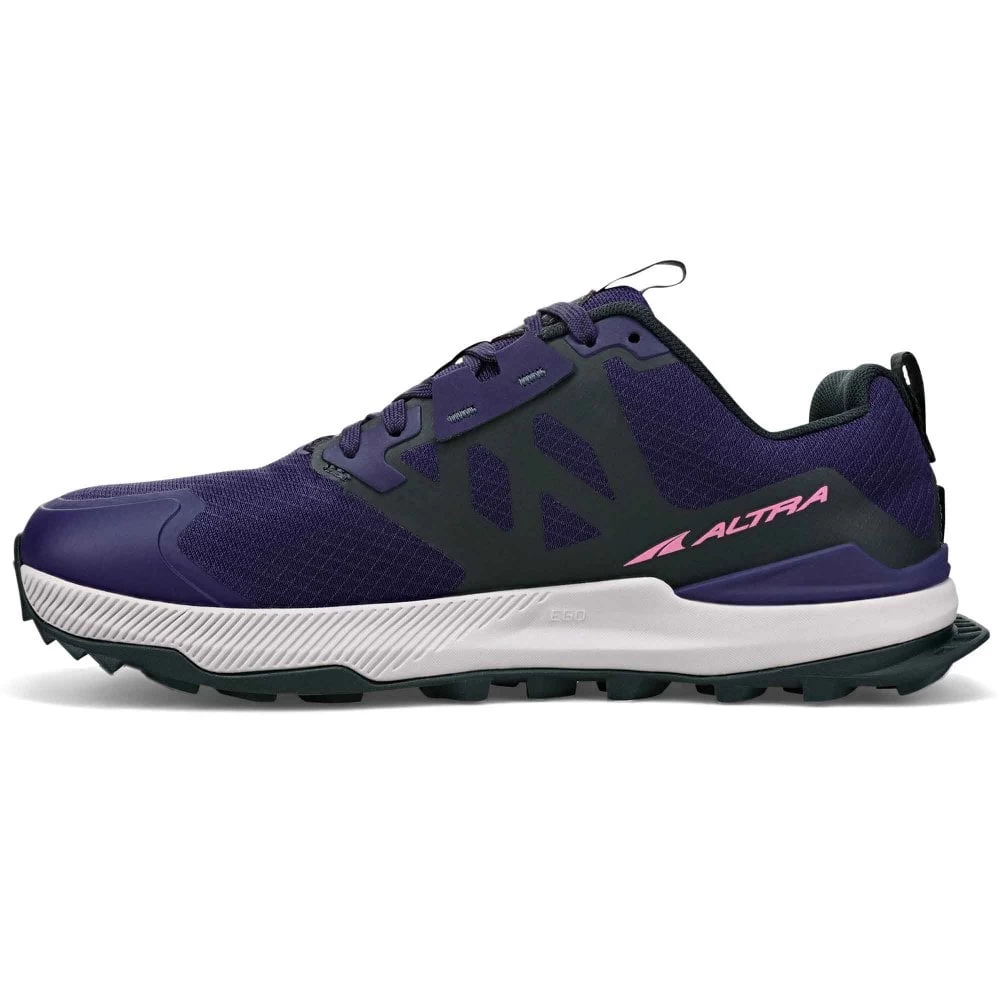 This is the women’s Altra Lone Peak 7 trail running shoe, with a Zero Drop heel to forefoot and a FootShape toe box. Both of these relatively ground-breaking technologies that make up the women’s Lone Peak 7 help to improve the trail runner’s form. A Zero Drop heel to forefoot drop trail running shoe encourages a mid-foot landing, compared with a somewhat traditional heel landing. A FootShape toe box, which feels much more roomy than many trail running shoes, which gives the foot room to function, expand after warming up and naturally cushion you upon landing.