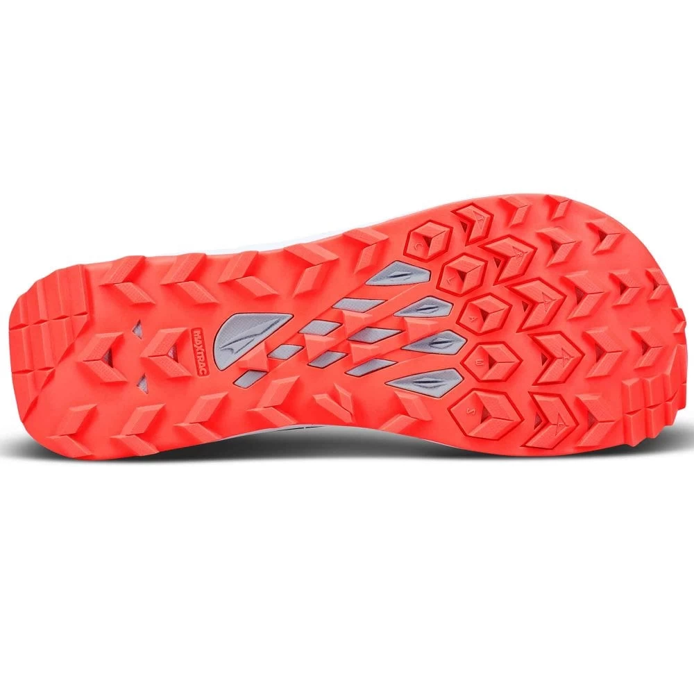 This is the women’s Altra Lone Peak 7 trail running shoe, with a Zero Drop heel to forefoot and a FootShape toe box. Both of these relatively ground-breaking technologies that make up the women’s Lone Peak 7 help to improve the trail runner’s form. A Zero Drop heel to forefoot drop trail running shoe encourages a mid-foot landing, compared with a somewhat traditional heel landing. A FootShape toe box, which feels much more roomy than many trail running shoes, which gives the foot room to function, expand after warming up and naturally cushion you upon landing.