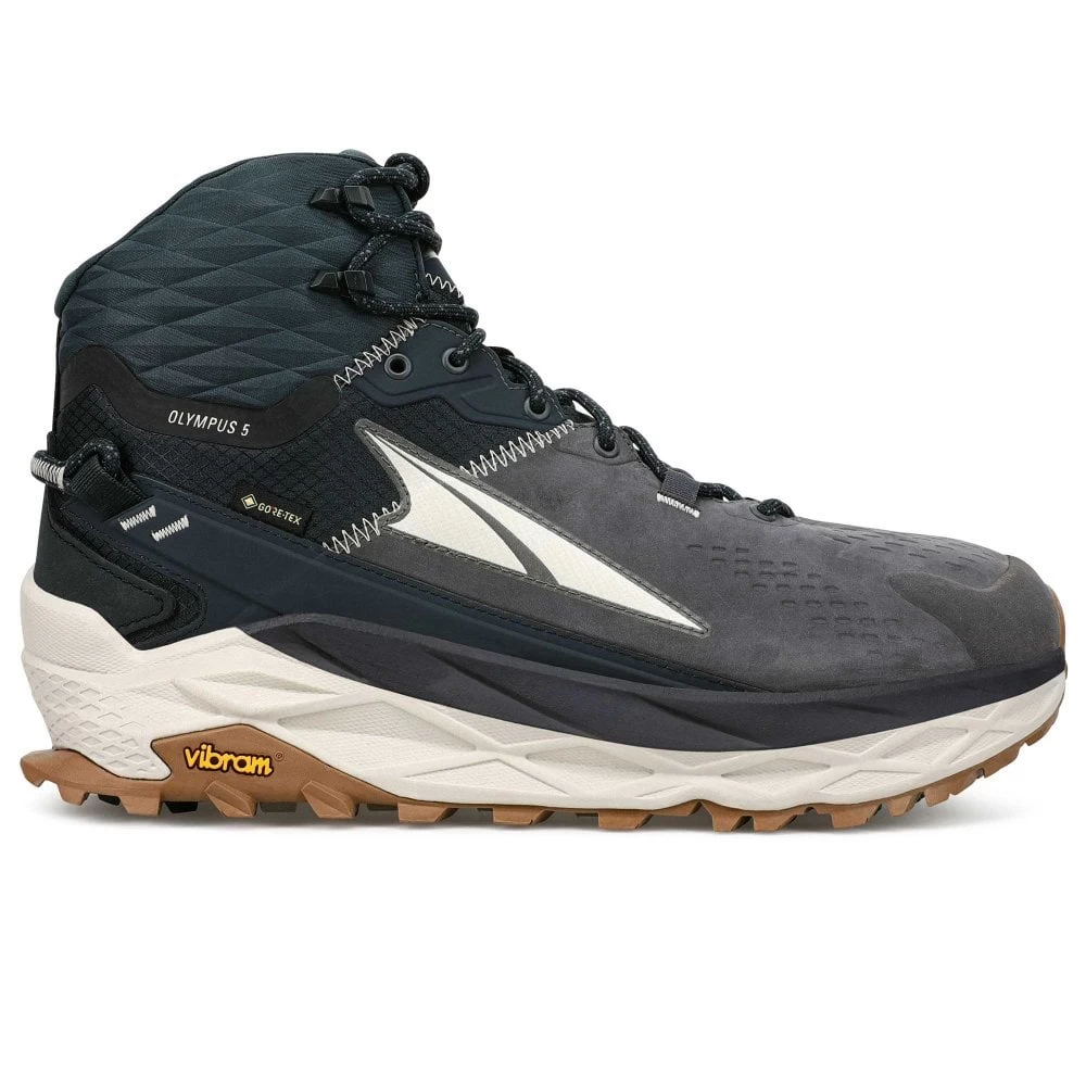 Altra describe the men’s Olympus 5 Hike Mid GTX hiking boots as: “Set out on any hiking adventure in the Olympus 5 Hike Mid GTX, with waterproof GORE-TEX product technology, which is guaranteed by GORE-TEX to keep you protected from the elements. According to Vibram®, a grippy Vibram® Megagrip outsole gives you unparalleled grip on wet or dry surfaces. Our Original FootShape™ Fit gives your feet room to spread out and move naturally and a mid-cut design gives your ankles added support so you can stay out there longer and keep discovering.”
