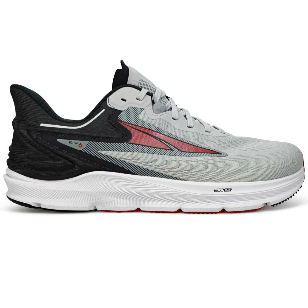 This is the wide fit men’s Altra Torin 6 is a max cushioning road running shoe described as: “The new Torin 6 is ready to work as hard as you do. This best-selling road shoe is equipped with our Altra EGO⢠MAX midsole foam and an updated molded heel collar that keeps up for mile after mile. This everyday road shoe is made for any road, any run, and any distance with our Standard FootShape⢠fit designed for performance.”